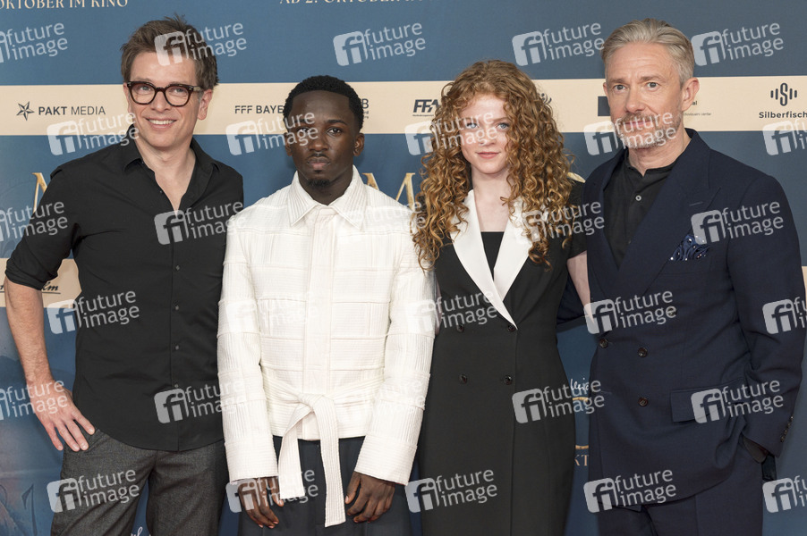 Christian Ditter, Araloyin Oshunremi, Alexa Goodall und Martin Freeman bei der Premiere des Kinofilms 'Momo' im Mathäser Filmpalast. München, 28.09.2025