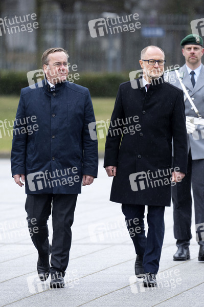 Boris Pistorius und Andris Spruds beim Empfang des Verteidigungsministers von Lettland mit militärischen Ehren zu einem gemeinsamen Gespräch und anschließendem Pressestatement im Bendlerblock. Berlin, 16.03.2026