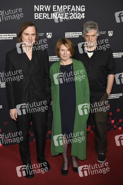Lars Eidinger, Corinna Harfouch und Matthias Glasner beim 21. NRW Empfang des Landes NRW und der Film- und Medienstiftung NRW im Rahmen der Berlinale 2024 in der Vertretung des Landes Nordrhein-Westfalen. Berlin, 18.02.2024