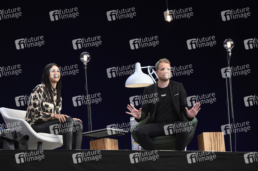 Oliver Pocher mit Ehefrau Amira Pocher bei der ersten Autokultur-Veranstaltung 'Die Pochers hier' auf dem Schützenplatz. Die Besucher verfolgen unter Berücksichtigung klarer Hygiene-Vorschriften während der Corona-Krise den Auftritt aus dem Auto. Hannover, 07.05.2020