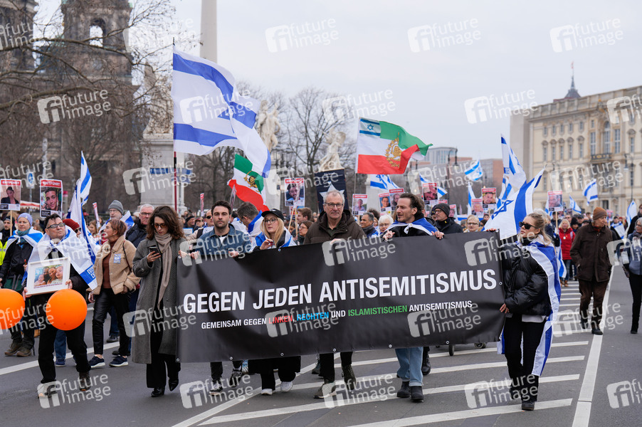 Paula Ranft und Volker Beck bei der Demo gegen Antisemitismus unter dem Motto 'Nie wieder ist Jetzt - Gemeinsam gegen linken, rechten und islamistischen Antisemitismus' vom Roten Rathaus zum Denkmal für die ermordeten Juden Europas. Berlin, 10.03.2024