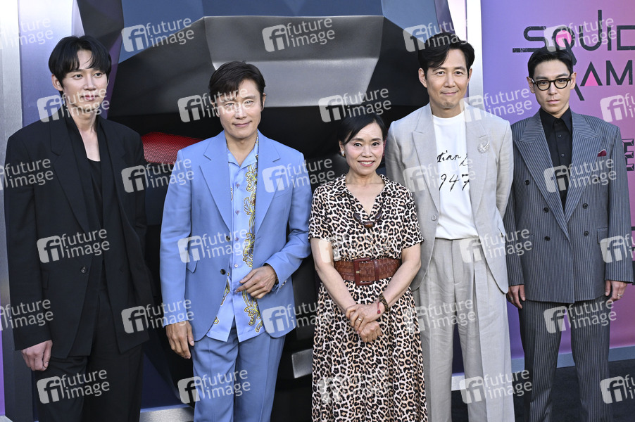 Park Sung-hoon, Lee Byung-hun, Kang Ae-shim, Lee Jung-jae und Choi Seung-hyun / T.O.P beim Screaning der 2. Staffel der Netflix Serie 'Squid Game' im Egyptian Theater. Los Angeles, 30.05.2025