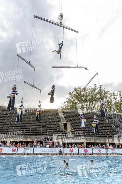 Aquapalooza Performance von Aquaplasma mit Synchronschwimmerinnen des Berliner Schwimm-Club Wedding, der Companie Transe Express und SchauspielerInnen und TheaterschülerInnen der Ballettschule Berlin beim Lollapalooza Festival im Olympiastadion und Olympiapark. Berlin, 08.09.2019