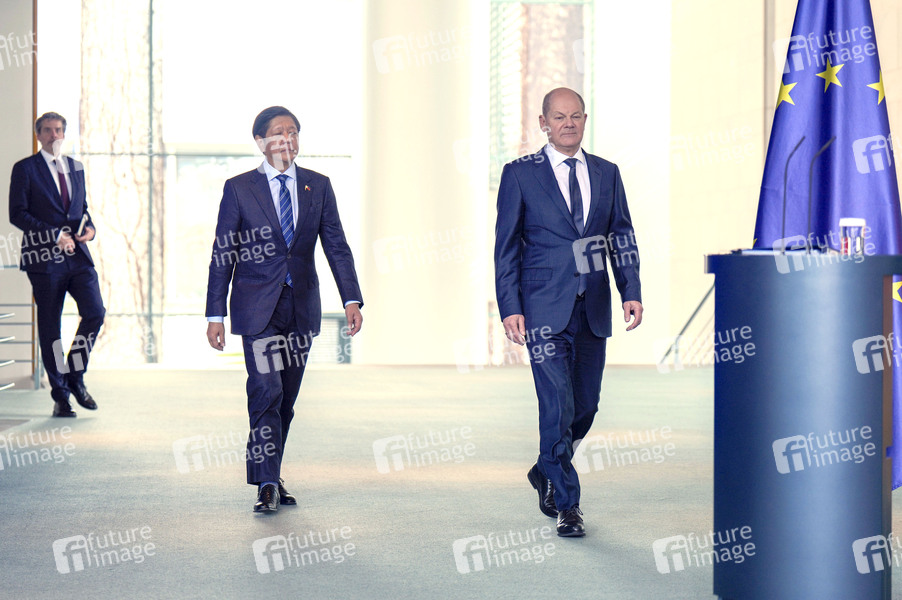 Ferdinand Marcos Jr. und Olaf Scholz beim Empfang des Staatspräsidenten der Republik der Philippinen mit militärischen Ehren und zu einem gemeinsamen Gespräch mit dem Bundeskanzler und anschließendem Pressestatement im Bundeskanzleramt. Berlin, 12.03.2024