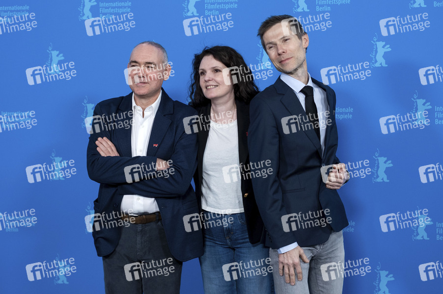 Christophe Boltanski, Catherine Charrier und Lionel Baier beim Photocall zum Kinofilm 'La cache / The Safe House' auf der Berlinale 2025 / 75. Internationale Filmfestspiele Berlin im Hotel Grand Hyatt. Berlin, 20.02.2025