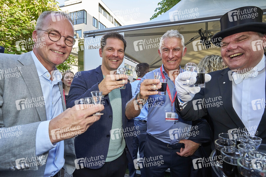 Matthias Miersch, Steffen Krach, Mirko Slomka und Rolf Franke beim Sommerfest der Niedersächsischen Landesregierung 2024 in der Vertretung des Landes Niedersachsen beim Bund. Berlin, 24.06.2024