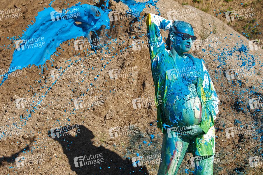 Bodyart, Künstler, Körperkunst, Bodypainting, Body Painting, Körpermalerei, Kunst, Art, Fineart, Farbe, Fotografie, Fotoshooting, Fotoart, Fotokunst, Akt, Frau, Model, Fotomodell, Fotomodel, Aktmodel, Aktmodell, Nacktmodell, Nacktmodel, nackt, arbig, bunt, abstrakte Kunst, moderne Kunst, Artperformance, Kunstperformance, Splash, Splashart, Farbkleckse, Farbspritzer, schwanger, Babybauch, Kieskuhle, Kieswerk, Sand, model, nudemodel, nude, nudeart, nude art, naked art, contempory art, naked, colour, color, pregnant, baby bump, gravel pit, gravel works