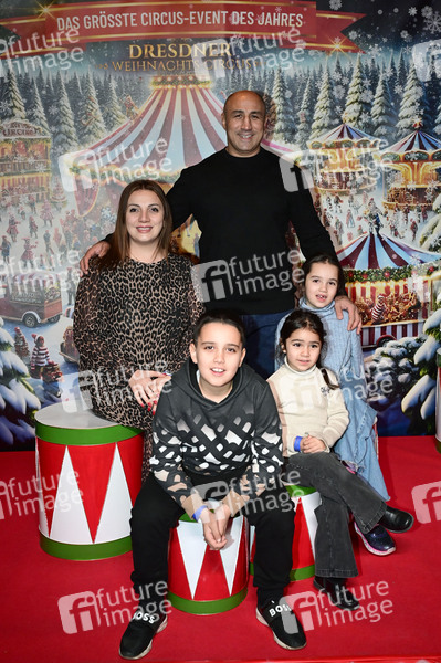 Arthur Abraham mit Ehefrau Mary Abrahamjan und Kindern bei der Premiere des 27. Dresdner Weihnachts-Circus an der Washingtonstraße. Dresden, 13.12.2024