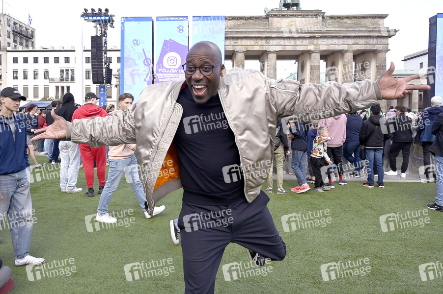 Joe Chialo bei der Eröffnung des Fußballkultursommers 2024 anlässlich der Fußball-Europameisterschaft 2024 auf der Fanmeile am Brandenburger Tor. Berlin, 12.06.2024