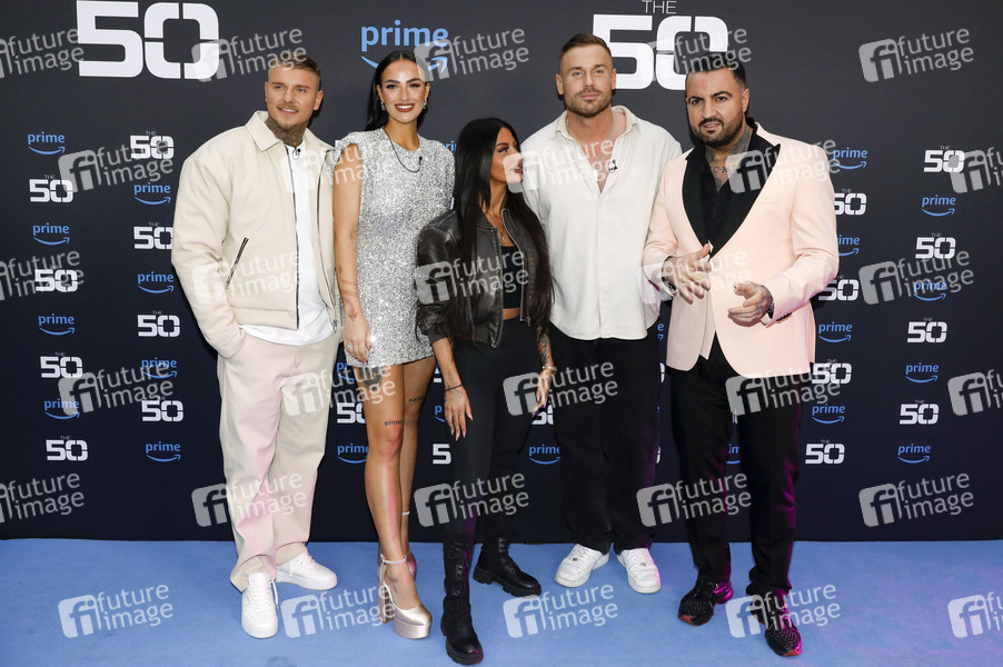 Paco Herb, Paulina Ljubas, Christina Dimitriou, Chris Broy und Cosimo Citiolo beim Photocall zur Amazon Prime Video Reality-Show 'The 50' in der Wolkenburg. Köln, 09.04.2024