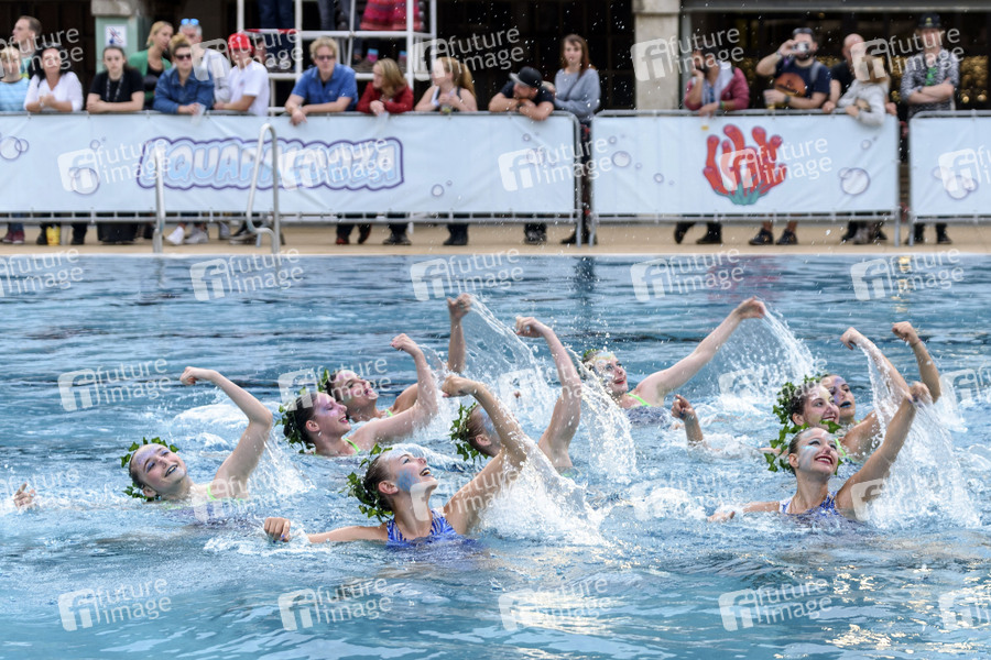 Aquapalooza Performance von Aquaplasma mit Synchronschwimmerinnen des Berliner Schwimm-Club Wedding, der Companie Transe Express und SchauspielerInnen und TheaterschülerInnen der Ballettschule Berlin beim Lollapalooza Festival im Olympiastadion und Olympiapark. Berlin, 08.09.2019