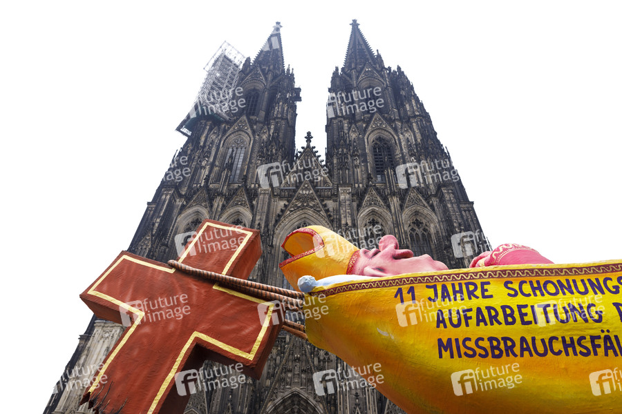 Künstler, Karnevalswagenbauer, Plastik, Erzbistum Köln, Kölner Dom, Domstadt, Kirchenskandal, Kindesmissbrauch, Missbrauch, Aufarbeitung, Verzögerung, Verschleppung, Gutachten, Vertrauenskrise, Erzbischof, Kardinal, Gutachter, Missbrauchsfälle, Opfer, Entschädigung, unter Verschluss, Verdachtsfälle, Kirche, Kirchenaustritte, Kirchenaustritt, Glaube, Konfession, Religion, Katholiken, Austrittswelle, katholische Kirche, Kardinal, Karikatur, Kirchenkritik, Kirchenkritiker, Priester, Pfaffen, Klerus, Sexualmoral, Scheinheiligkeit, Bistum, Missbrauchsskandal