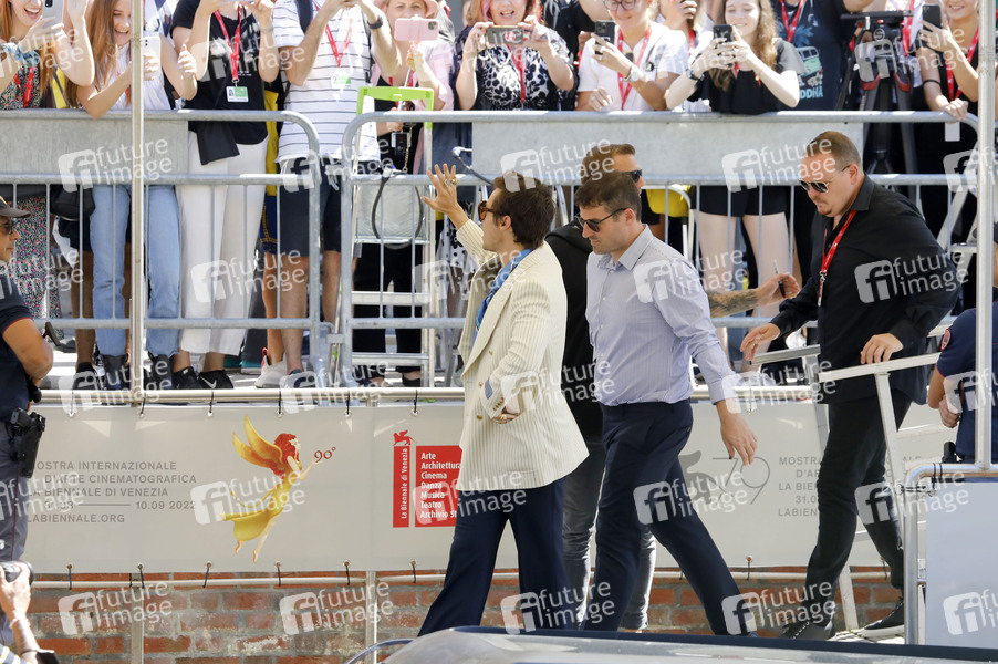 Harry Styles bei der Abfahrt nach dem Photocall zum Kinofilm 'Don't Worry Darling' auf der Biennale di Venezia 2022 / 79. Internationale Filmfestspiele von Venedig am Palazzo del Casino. Venedig, 05.09.2022