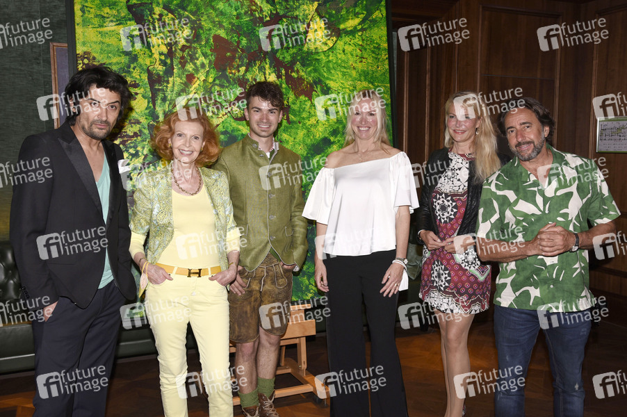 Adrian Can, Jutta Kammann, Andreas Hastreiter, Simone von Anhalt, Ursula Gottwald und Dieter Landuris bei der Benefiz Kunstauktion in der Jahreszeiten Bar im Hotel Vier Jahreszeiten Kempinski. München, 01.07.2021