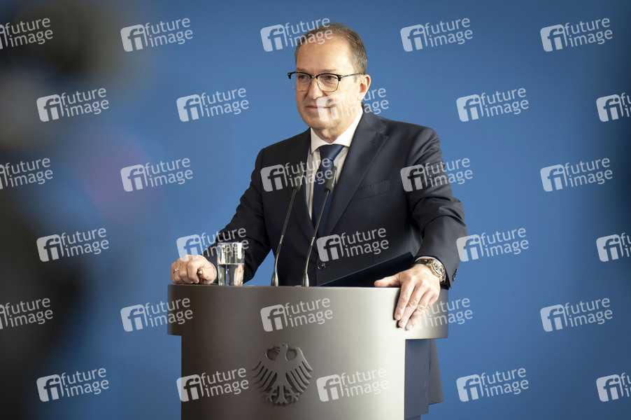Alexander Dobrindt bei einer Pressekonferenz zum Verbot der Reichsbürger-Gruppe 'Königreich Deutschland' im Bundesministerium des Innern und für Heimat. Berlin, 13.05.2025