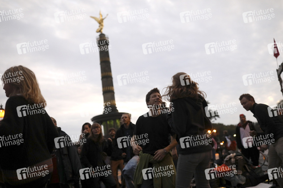 Aktivisten der Klimabewegung 'Extinction Rebellion' blockieren den Großen Stern an der Siegessäule. Berlin, 08.10.2019