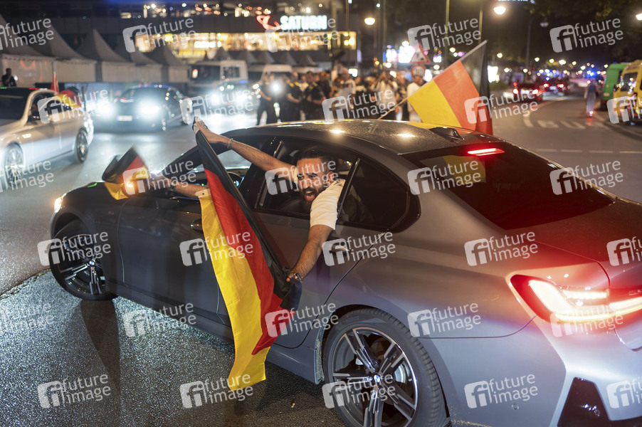 Deutsche Fans feiern den deutschen Sieg im Viertelfinale der Fußball-Europameisterschaft 2024 mit einem Autokorso auf dem Kurfürstendamm. Berlin, 29.06.2024