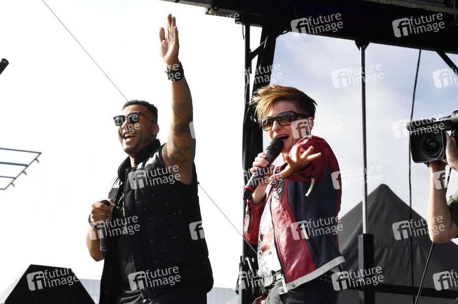 Nitro und Franca Morgano von Magic Affair live beim 90er Drive-In-Konzert von rbb 88.8 auf dem Messegelände. Berlin, 21.05.2020
