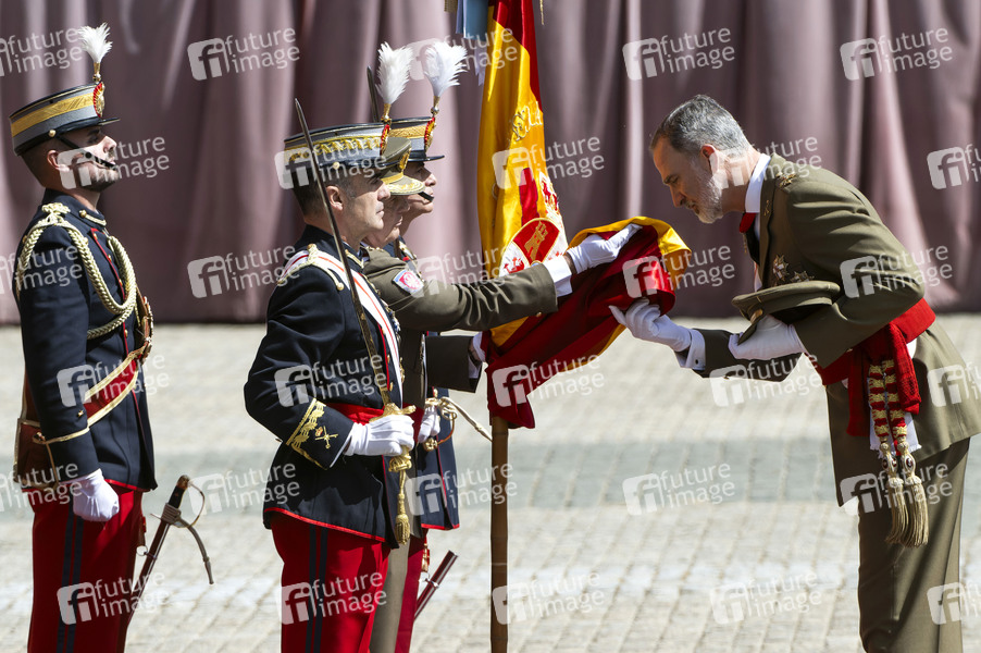 Ausbildung, General Military Academy, Militärakademie, Zaragoza, Militär, Soldaten, Kadetten, Soldatin, Kadettin, Zeremonie, Tradition, Treuebekundung, Fahneneid, Gelöbnis, Vereidigung, Adel, König von Spanien, Staatsoberhaupt, Fürst von Asturien, Fürst von Girona, Felipe de Borbón, Monarch, Royal