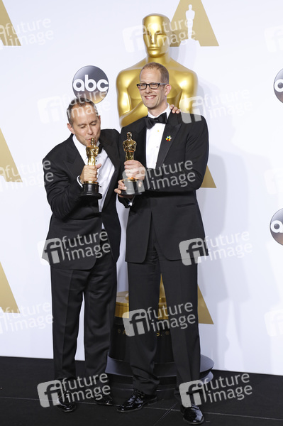Jonas Rivera und Pete Docter (Bester Animationsfilm 'Alles steht Kopf / Inside Out') im Presseraum der Oscar Verleihung 2016 / 88th Academy Awards im Loews Hollywood Hotel. Los Angeles, 28.02.2016