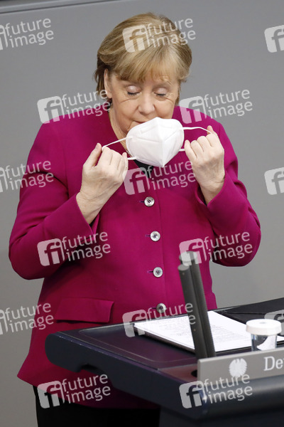 Angela Merkel in der 218. Sitzung des Deutschen Bundestages im Reichstagsgebäude. Berlin, 25.03.2021