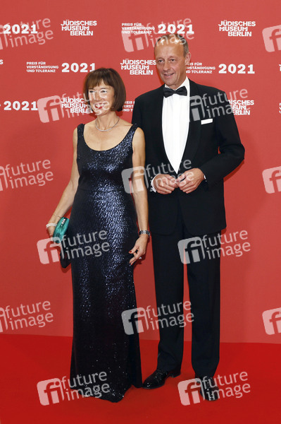 Friedrich Merz mit Ehefrau Charlotte Merz bei der Verleihung des 'Preises für Verständigung und Toleranz' im Glashof des Jüdischen Museums. Berlin, 13.11.2021