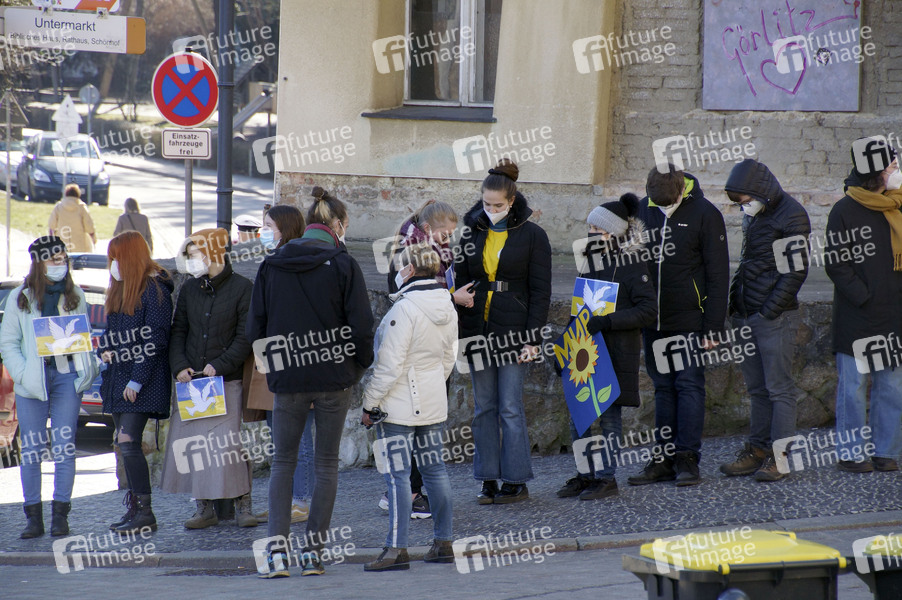 Initiiert vom Görlitzer Augustum-Annen-Gymnasium fanden sich ca. 1.000 Menschen zu einer grenzüberschreitenden Menschen-Kette zusammen, ausgehend von der Altstadtbrücke in beide Richtungen nach Zgorzelec und Görlitz. Mit dabei waren der Görlitzer Oberbürgermeister Octavian Ursu, sein Zgorzelecer Amtskollege Rafal Gronicz und Marcin Król, der Konsul der Republik Polen in Berlin. Görlitz, 09.03.2022