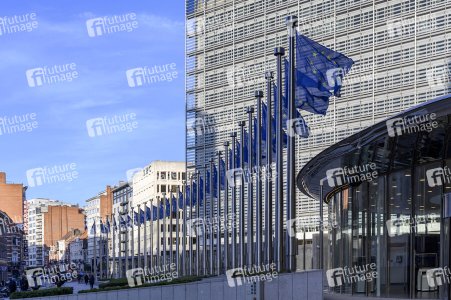 Europaviertel, EK, Architektur, EU-Kommission, supranationales Organ der Europäischen Union, Einhaltung des Europarechts durch die EU-Mitgliedstaaten, Europäische Union, Teil des politischen Systems der EU, Europäische Kommission, Fahne, Flagge, Fahnen, Flaggen