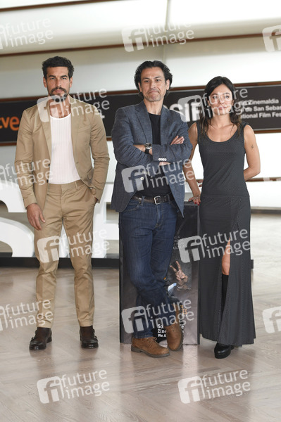 Mario Casas, Rodrigo Cortes und Anna Castillo beim Photocall zum Kinofilm 'Escape' auf dem 72. Internationalen Filmfestival San Sebastian / Festival Internacional de Cine de San Sebastián im Kursaal. San Sebastian, 27.09.2024