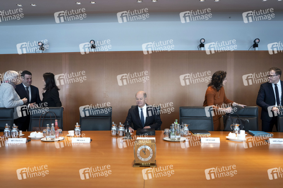Olaf Scholz mit Kabinettsmitgliedern in der 127. Sitzung des Bundeskabinetts im Bundeskanzleramt. Berlin, 12.02.2025