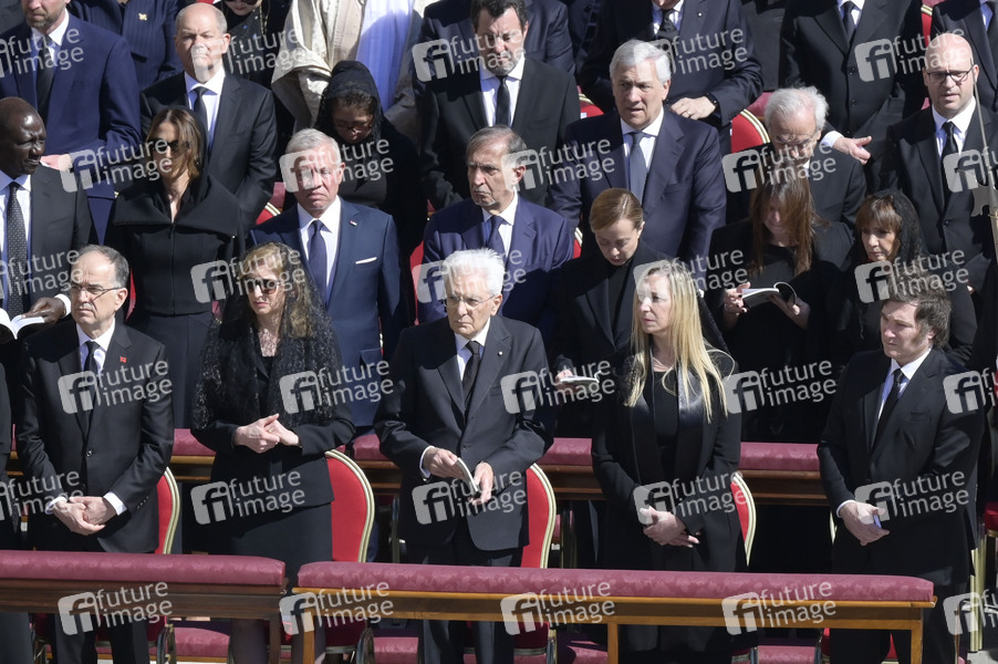 Trauergäste bei der Trauermesse für den verstorbenen Papst Franziskus auf dem Petersplatz. Vatikanstadt, 26.04.2025