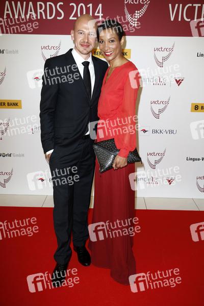 Annabelle Mandeng und Freund Matthias Pieper bei der 9. Victress Awards Gala im andel’s Hotel. Berlin, 28.04.2014