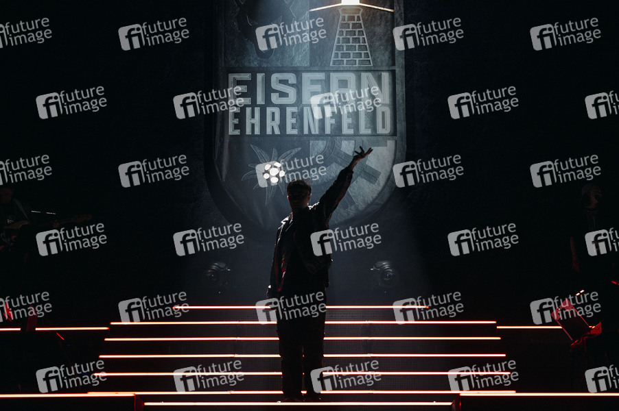 Jan Böhmermann und das Rundfunk-Tanzorchester Ehrenfeld live bei einem Konzert der 'Eisern Ehrenfeld'-Tour in der Messehalle. Erfurt, 15.01.2025