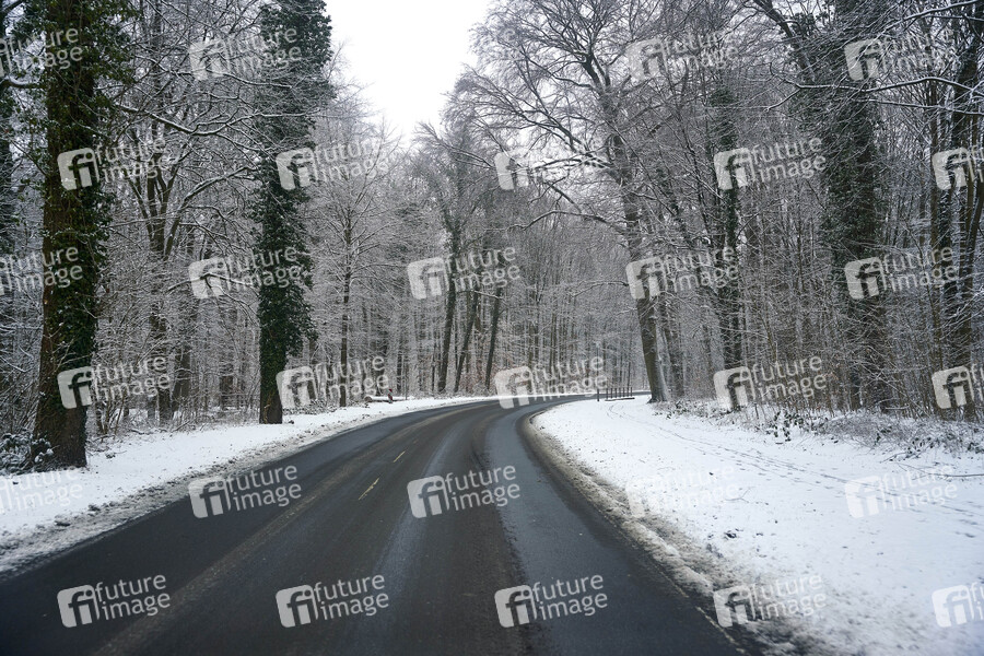 Winterdienst, Schnee, Winter, gefrierende Nässe, Wettervorhersage, kalt, Frost, Kälte, Wetteraussichten, Verkehr, Schneeglätte, Unfallgefahr, überfrierende Nässe, verschneite Straße, Symbolbild, Symbolfoto