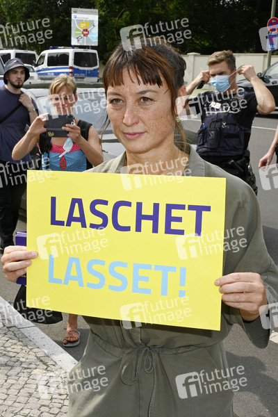 Lu Yen Roloff, freie Kandidatin für den Bundestag 2021, bei einer Gedenkveranstaltung zum 60. Jahrestag des Baus der Berliner Mauer mit Armin Laschet an der Glienicker Brücke. Potsdam, 13.08.2021