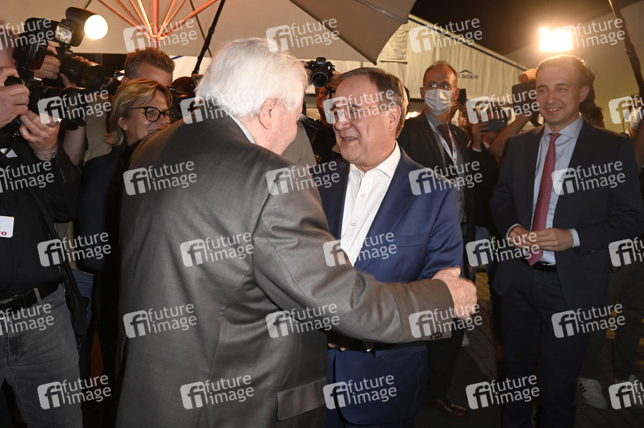 Bernhard Vogel, Armin Laschet und Paul Ziemiak beim 'Triell - Dreikampf ums Kanzleramt' von ARD und ZDF mit den Kanzlerkandidaten im Studio Berlin-Adlershof. Berlin, 12.09.2021