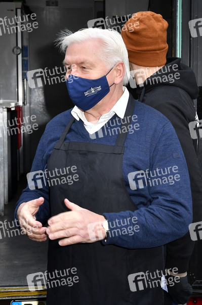 Bundespräsident Frank-Walter Steinmeier verteilt Essen und Geschenke aus dem Food Truck an Obdachlose und Bedürftige. Berlin, 16.12.2020