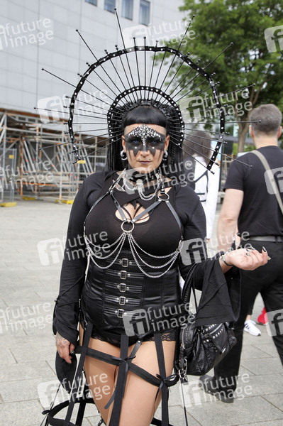 Festivalbesucher beim 28. Wave-Gotik-Treffen auf dem Agra-Gelände. Leipzig, 09.06.2019
