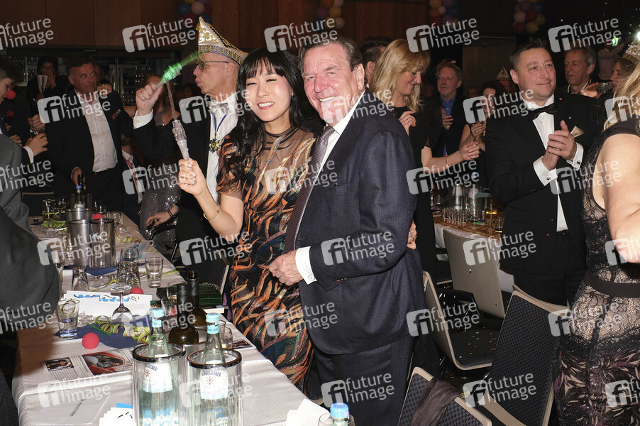 Gerhard Schröder mit Ehefrau Kim So-yeon bei der Premierengala 2020 der Lindener Narren im Fritz-Haake-Saal. Hannover, 08.02.2020
