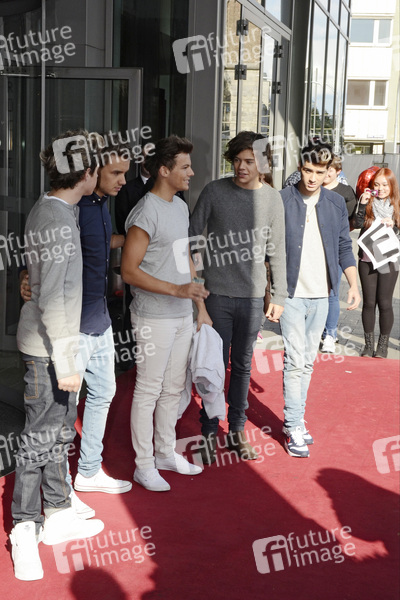 Die Band One Direction verlässt das Dorint Hotel auf dem Weg zu einer Autgrammstunde im Mediapark, Köln