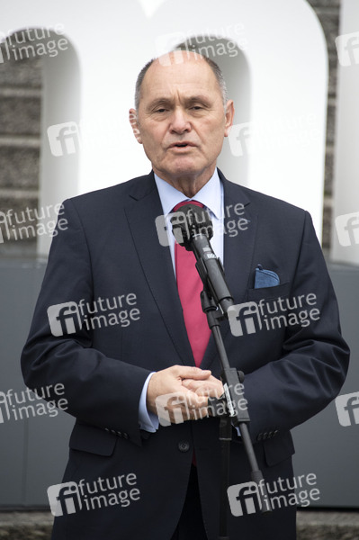 Wolfgang Sobotka bei den Pressestatements von Wolfgang Sobotka, Mickey Levy und Bärbel Bas am Schriftzug #WeRemember zur Erinnerung an die Millionen im Nationalsozialismus ermordeten Juden vor dem Reichstagsgebäude. Berlin, 25.01.2022