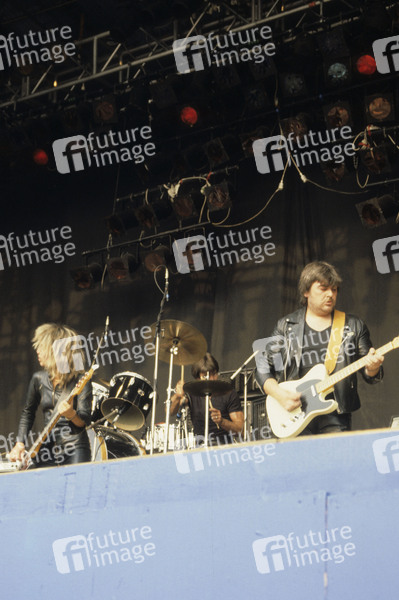 Suzi Quatro mit Ehemann Lenny Tuckey live auf dem Reading Rock Festival 1983 an der Richfield Avenue. Reading, 27.08.1983