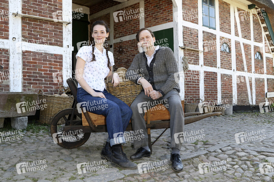 Maria Ehrich und Milan Peschel beim Fototermin am Set zum ZDF Film 'Altes Land' im Motiv 'Hof Ida'. Jork, 23.04.2019