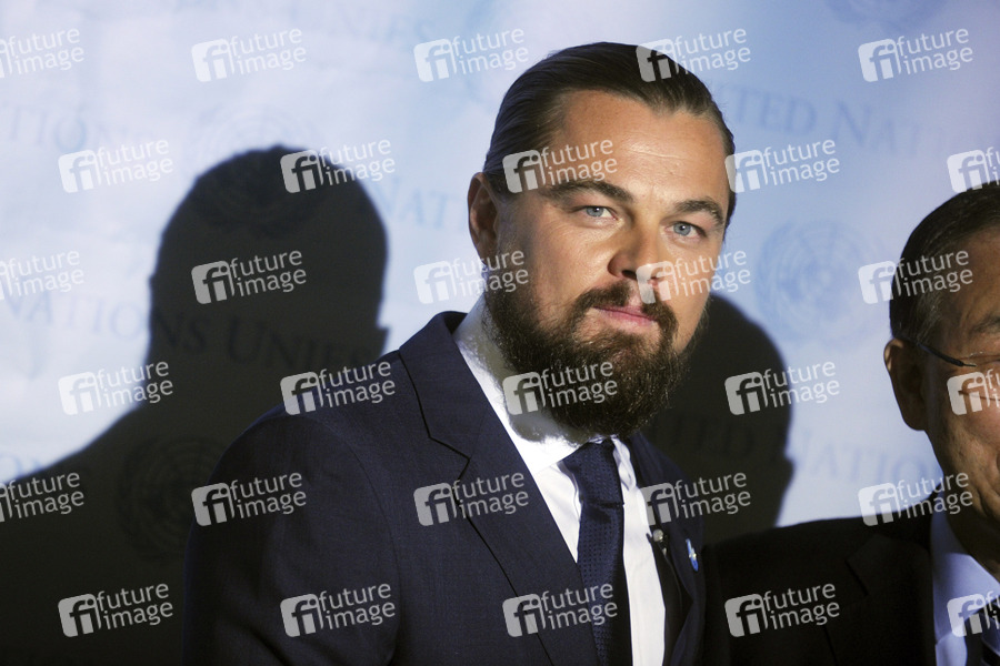 Leonardo DiCaprio bei der Ernennung zum UN-Botschafter des Friedens durch UN-Generalsekretär Ban Ki-moon im Hauptquartier der Vereinten Nationene. New York, 20.09.2014