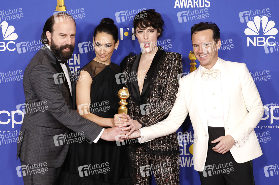 Brett Gelman, Sian Clifford, Phoebe Waller-Bridge und Andrew Scott mit dem Preis für die beste TV Serie, Komödie oder Musical 'Fleabag' bei der Verleihung der 77. Golden Globe Awards im Beverly Hilton Hotel. Beverly Hills, 05.01.2020