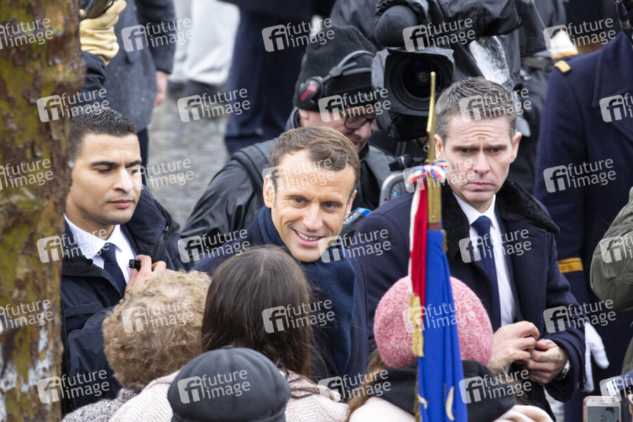 Emmanuel Macron bei der 101. Jahrfeier des Waffenstillstands von 1918 am Triumphbogen. Paris, 11.11.2019