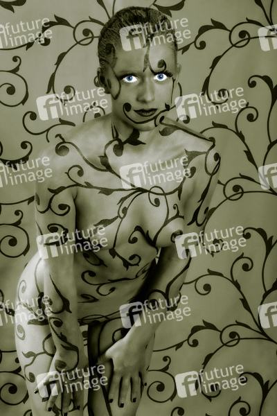 Bodypainting, Stoff, Erotik, Frau, nackt, drinnen, weiblich, Muster, erotic, woman, nude, indoor, female