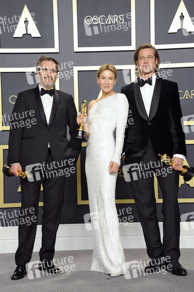 Joaquin Phoenix (bester Hauptdarsteller in 'Joker'), Renee Zellweger (beste Hauptdarstellerin in 'Judy') und Brad Pitt (bester Nebendarsteller in 'Once Upon a Time in Hollywood') im Press Room der Oscar Verleihung 2020 / 92nd Annual Academy Awards im Hollywood & Highland Center. Los Angeles, 09.02.2020
