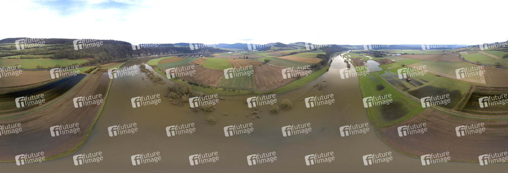 Hochwasser, Überschwemmung, Hochwasserlage, Hochwassermarke, Niederschlag, Regen, Regenfälle, Starkregen, Regenwetter, Wetter, anhaltende Regenfälle, ansteigendes Wasser, Dauerregen, Deutscher Wetterdienst, Extremwetter, extreme Wetterlage, nasse Straßen, Hochwasserinformationsdienst, Hochwassermeldedienst, Hochwasserschutz, Hochwasserschutzzentrale, Klimatrend, Klimawandel, Pegel, überflutet, Überflutung, Überschwemmungen, Unwetter, Unwetterwarnung, Wasser, Wasserstand, Wasserstände, Wasserschäden, Wetterextreme, Wetterlage, Wetterprognose, Wettervorhersage, Fluss über das Ufer getreten, Luftaufnahme, Luftbild, Drohne, Drohnenaufnahme, PanoramaSymbolbild, Themenbild, Symbolfoto, Themenfoto