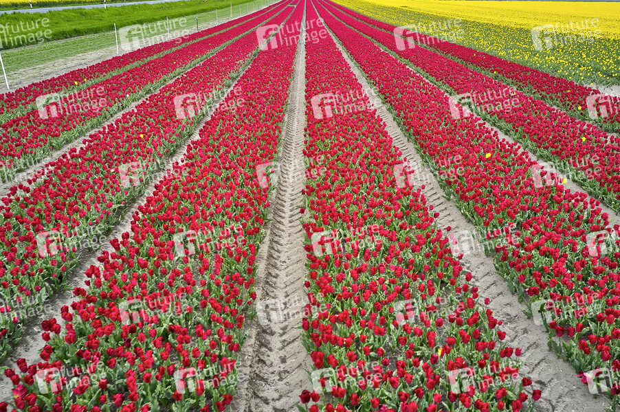 Tulpe, Tulpen, Feld, Farbe, Blumen, Blume, Pflanzen, Zierpflanzen, Schnittblumen, Tulpenfeld, Luftaufnahme, Luftbild, Drohne, Drohnen, Kameradrohne, Drohnenaufnahme